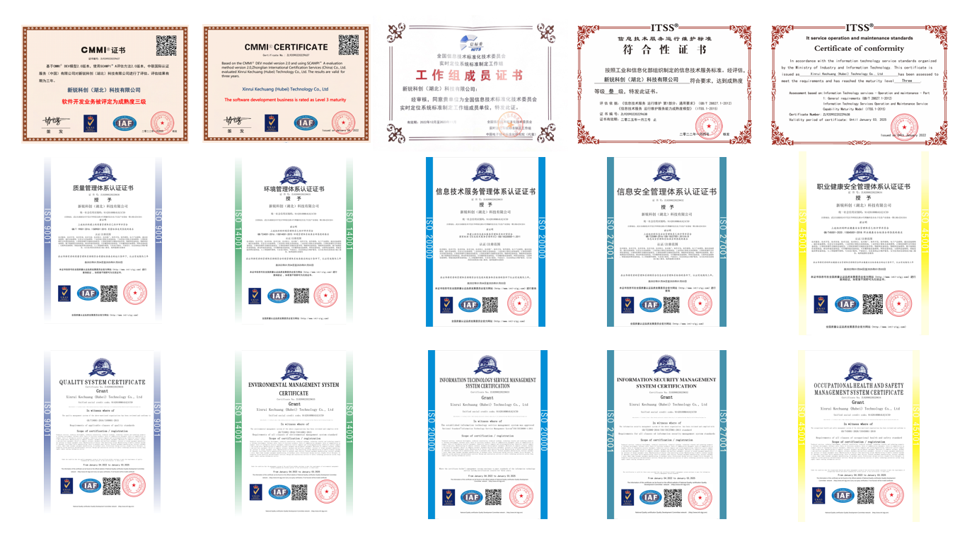 作為一家專注于高精度定位軟硬件產品研發及生產的高新技術企業,新銳科創已建立完善的經營管理制度,在各個層面保持高效運作,獲得CMMI軟件能力成熟度集成模型、CCC強制認證、ITSS信息技術服務標準、ISO國際標準化組織等多項企業認證。