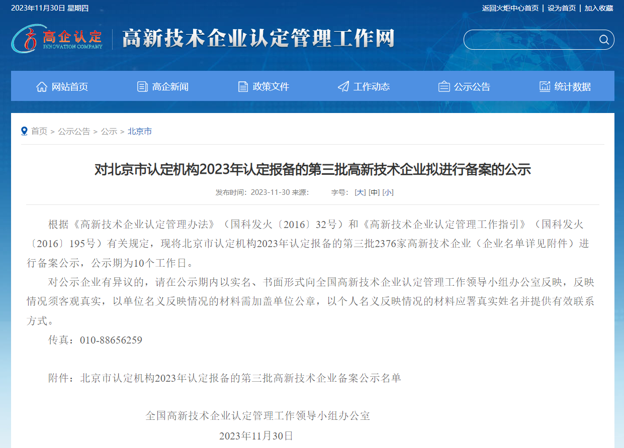 北京新銳科創榮獲2023年高新技術企業認定備案
