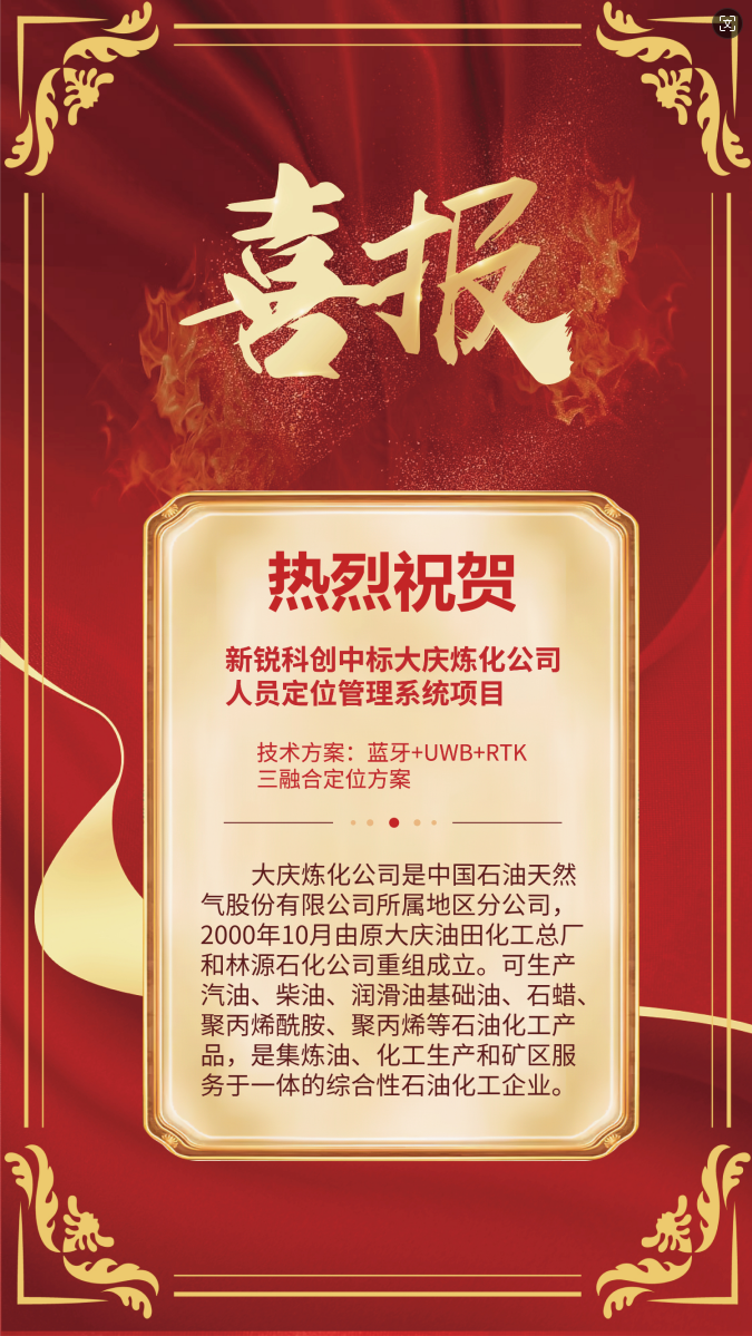 熱烈祝賀新銳科創(湖北)有限公司成功中標大慶煉化公司的人員定位管理系統項目!