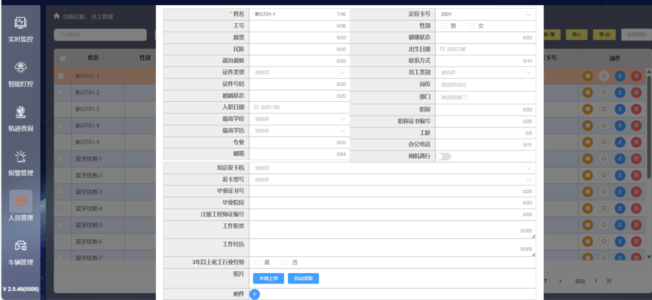 系統具備人員管理和設備管理功能。在人員管理方面,可新增、導入、修改、刪除人員信息,包括員工、承包商、訪客等不同類型人員,支持批量導入照片、一鍵導出詳細人員列表等操作,方便企業進行人員信息管理。在設備管理方面,可對定位卡、定位信標等設備進行新增、導入、修改、刪除等操作,實時監測設備的在線/離線狀態、電量狀態,確保設備正常運行。