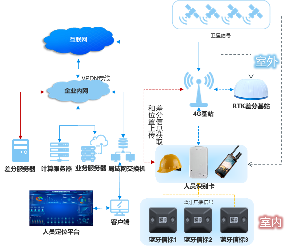 RTK技術依托北斗衛星導航系統,通過在已知精確坐標的固定位置設立基準站。基準站持續接收北斗衛星信號,計算出衛星信號與自身精確位置的偏差,即差分改正數,并通過4G或其他通信鏈路發送給移動站。移動站在接收衛星信號的同時,接收基準站發來的差分改正數,對自身接收到的衛星信號進行修正,利用高精度定位算法實現亞米級定位。在火電站的室外開闊區域,如廠區道路、煤場等,RTK技術能夠提供穩定且高精度的定位服務,確保人員和車輛的位置被精確追蹤。