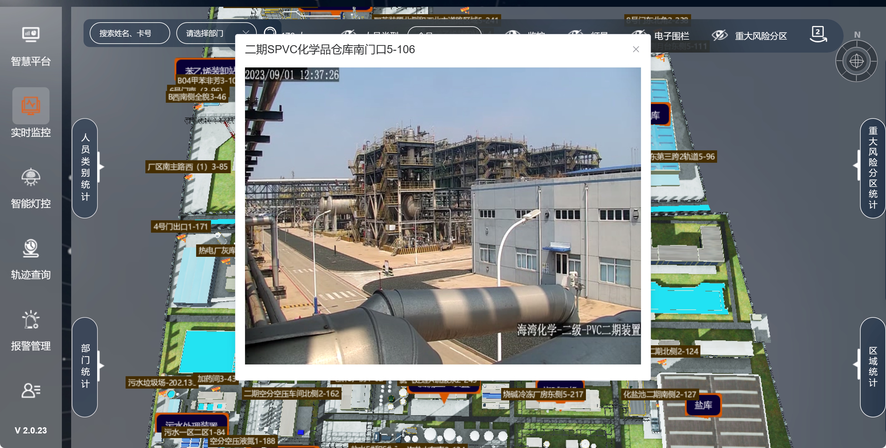 電子圍欄與風險預警功能,針對性解決高危區域人員管控痛點。管理人員可根據園區風險等級,自定義劃定圍欄范圍,重點覆蓋重大危險源、高危作業等限制區域,靈活設置管控規則。當人員出現越界、超時滯留、靜止、超員等異常時,系統立即觸發報警,報警信息同步推送至管理人員終端,確保第一時間發現并處置風險,從源頭杜絕安全隱患,防范事故發生。