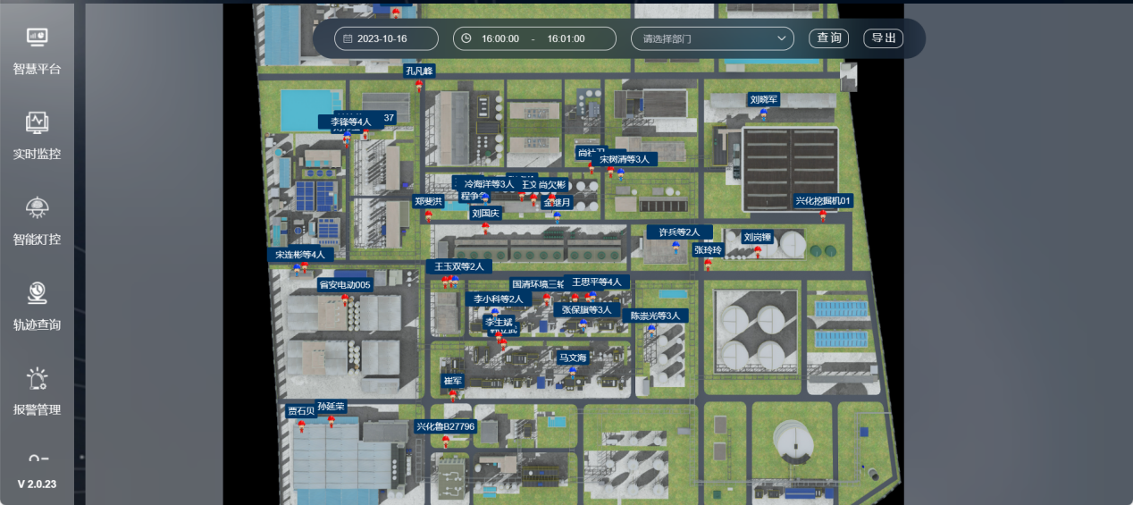 系統支持在工廠2D/3D電子地圖上實時顯示人員位置分布,可分樓層、分車間顯示;可對每個人的實時軌跡進行跟蹤,實現了對人員位置的實時追蹤和展示。