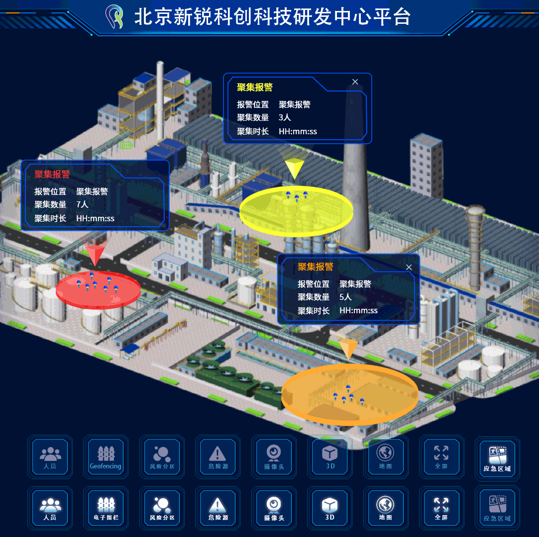可通過查看人員實時位置分布熱力圖,快速了解當前區域人群聚集程度。