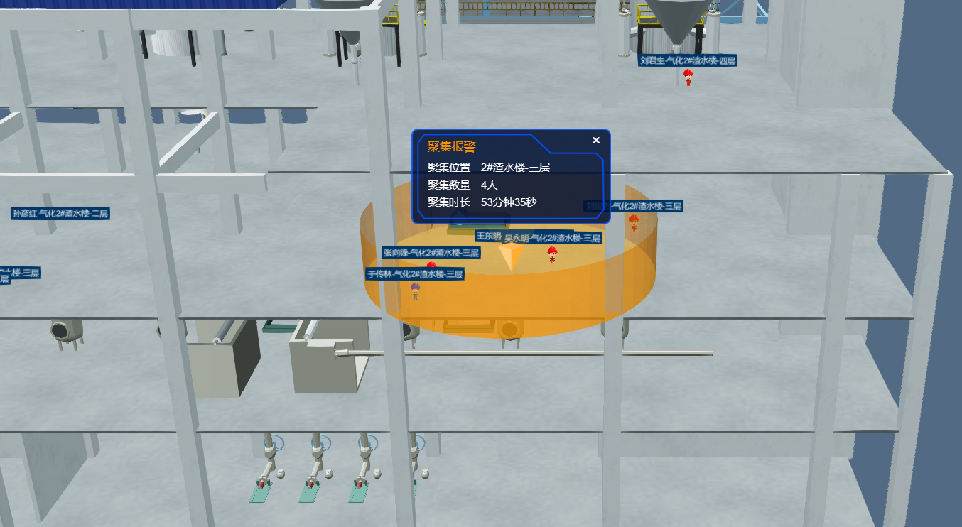 在獲得人員準確位置的基礎上,系統開發了人員聚集的識別算法。這些算法通過統計分析技術,檢測員工在特定區域內的聚集情況。一旦發現員工聚集的數量或密度超過預設的閾值,系統立即觸發預警機制,向相關人員發送預警信號。